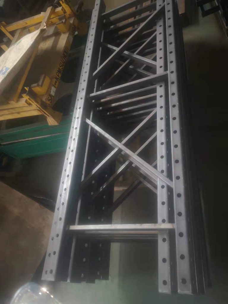 傳統(tǒng)模具架立柱的生產(chǎn)是先 剪板、沖孔、折彎、焊接四個(gè)步驟,每一步都要投入2個(gè)以上的人力;