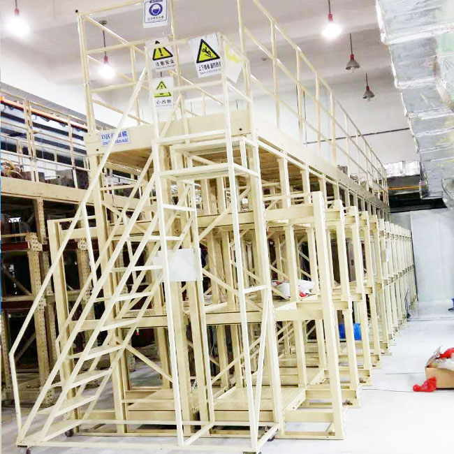 許多企業為了節約生產用地,都會想辦法更好的使用有效空間。如今使用鋼平臺模具架也成了企業受歡迎的一種模具架。它的優勢在于,下面的模具架可以做模具倉儲,上面的平臺可以做辦公室,倉儲,雜物間等。