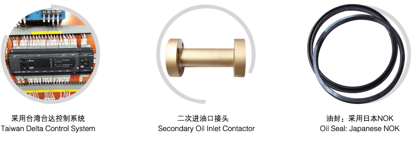 5、采用全進口液壓系統邏輯閥回路控制,配管少,恒溫以免溫度上升,延長機臺壽命。